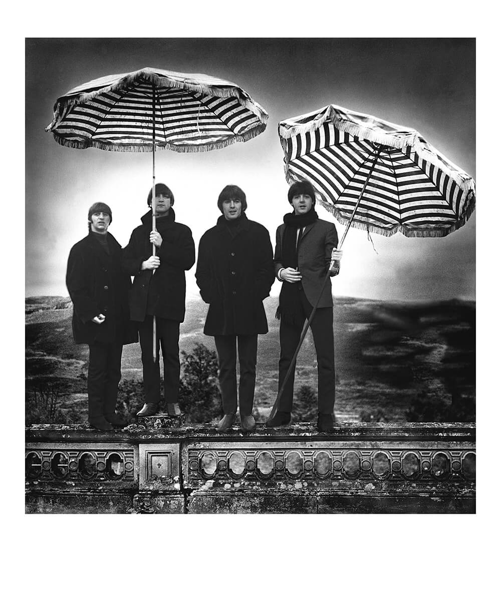 写真「ビートルズ - アンブレラ - スコットランド、パースシャー - 1964年」【オリジナル・プリント/ロバート・ウィテカー・フォトグラフィーのエンボス入り】